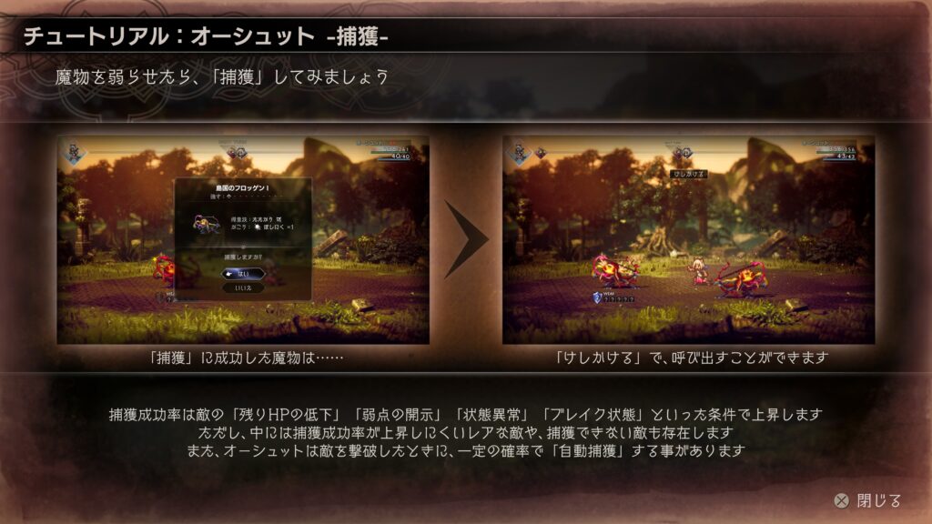「捕獲」することでその敵に対応した技を戦闘中に使用することができます。