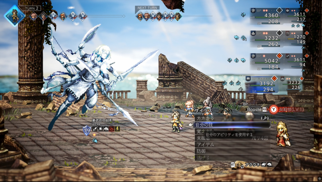 物防アップ、物攻ダウンは必須でローラナによる自動復活はかけておくと戦闘が楽になります。