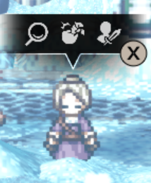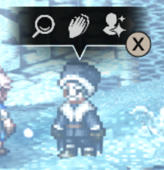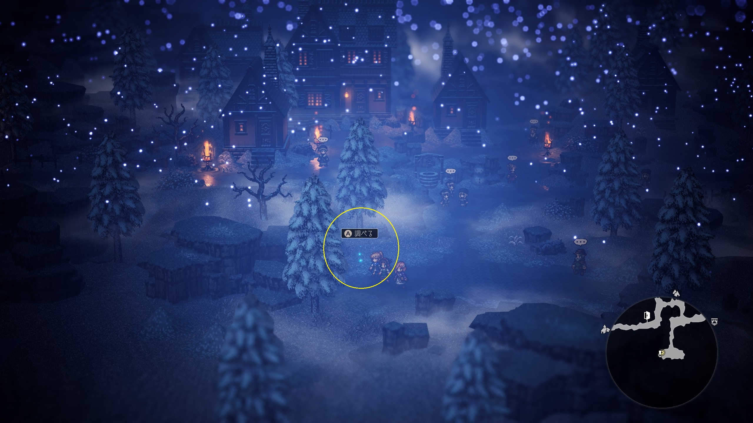 | 聞き出すで隠されたアイテムの情報を入手 買取るで雪だるまを購入すると道が開けるので 南へ降りて隠されたアイテムを入手 | |