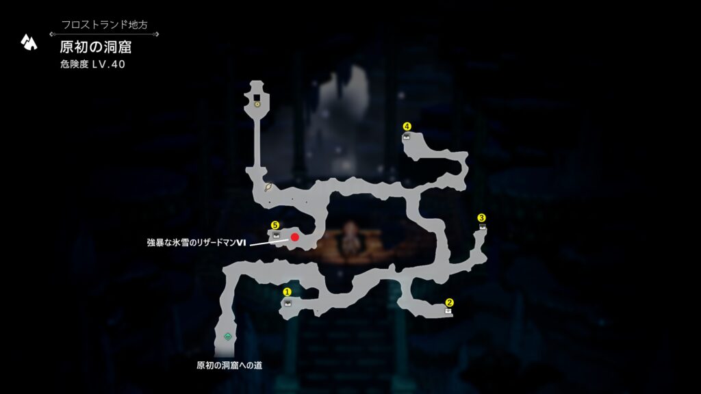 | 導火の雪渓-(Lv.40) 原初の洞窟への道(Lv.40) 原初の洞窟-(Lv.40) |