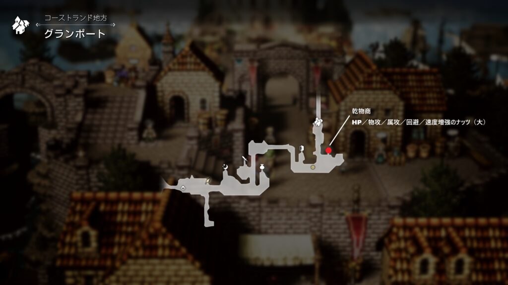 | 乾物商 | HP増強のナッツ(大) 物攻増強のナッツ(大) 属攻増強のナッツ(大) 回避増強のナッツ(大) 速度増強のナッツ(大) |