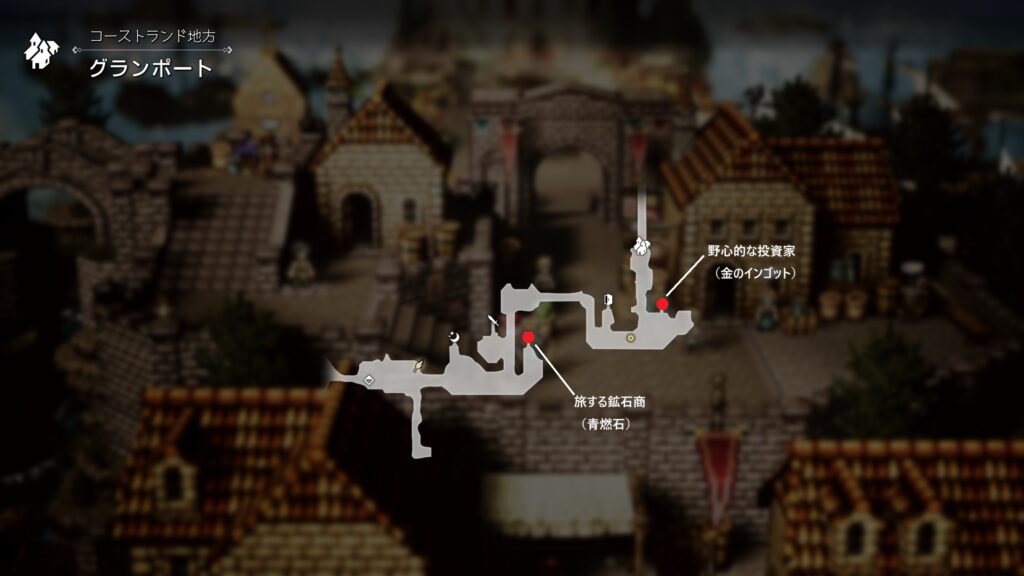 | 有望な投資先を探している男性。 町が活気づき、成長していく様を見るのが楽しいらしい。 グランポートは魅力的だが、熟しきった感がある。 自分の投資で大きく変貌する可能性のある町を探している。 | |||