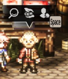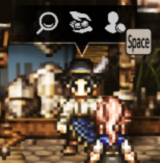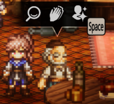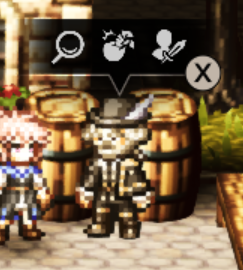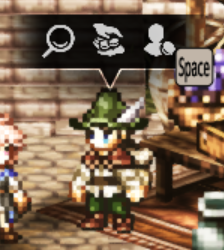 | グランポートの酒場に入り浸る中年の男性。 住人だろうと旅人だろうと気さくに話しかけ、 酒を勧めてはあっという間に仲良くなる。 過去には、敵の内情を味方に流す情報屋をしていた。 曰く、酒と美味い飯さえあれば人の口は軽くなる。 | |||
