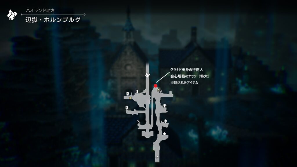| グラナド出身の行商人 | 会心増強のナッツ(特大) (隠されたアイテム) |