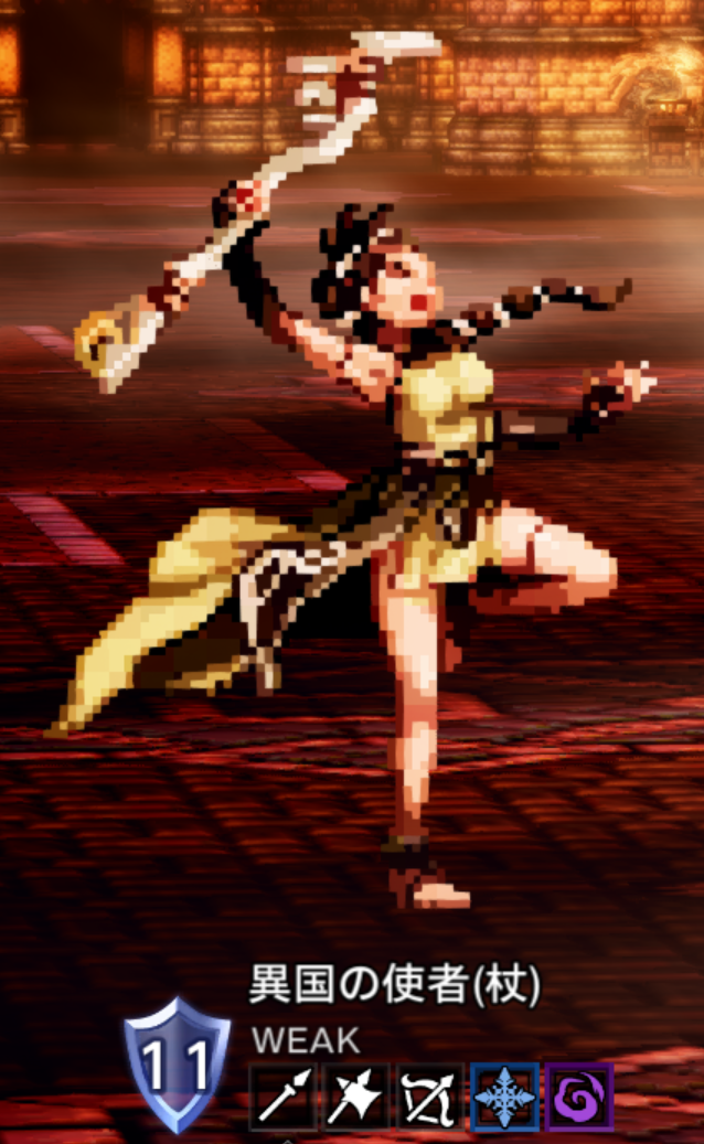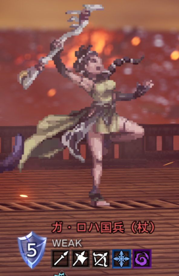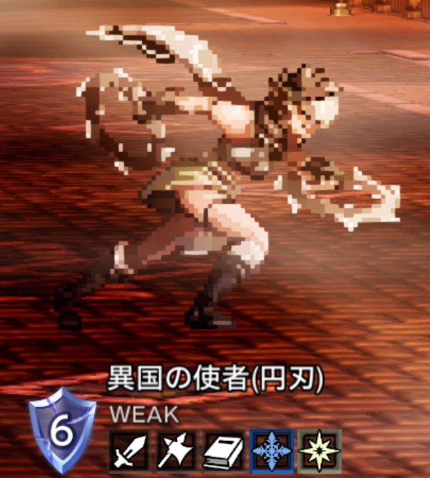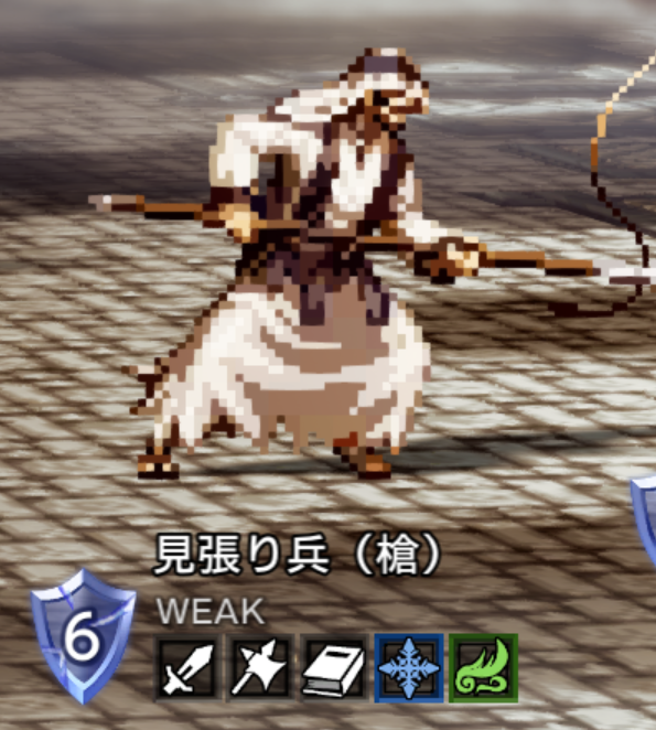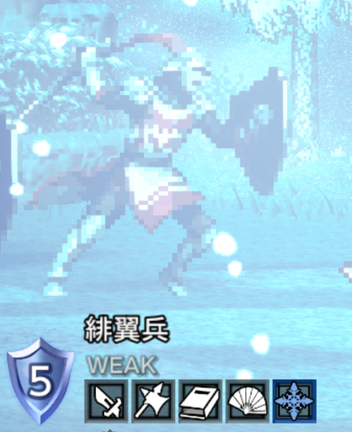 | 剣 / 弓 / 扇 / 氷 / 光 ↓ 槍 / 弓 / 杖 / 火 / 風 ↓ 剣 / 弓 / 杖 / 氷 | |