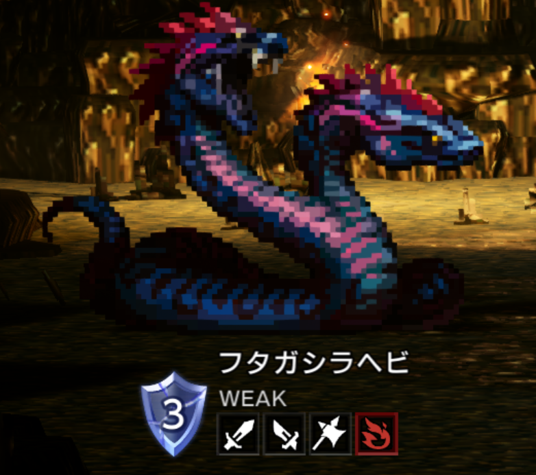 | 祖竜アマツカミノオロチ 剣 / 本 / 氷 / 光 ↓ 槍 / 扇 / 火 / 闇 ↓ 斧 / 杖 / 風 / 闇 ↓ 短剣 / 弓 / 雷 / 光 弱点を点くたびに弱点変更 竜紅玉 剣 / 本 / 氷 / 光 竜黄玉 斧 / 杖 / 風 / 闇 | |