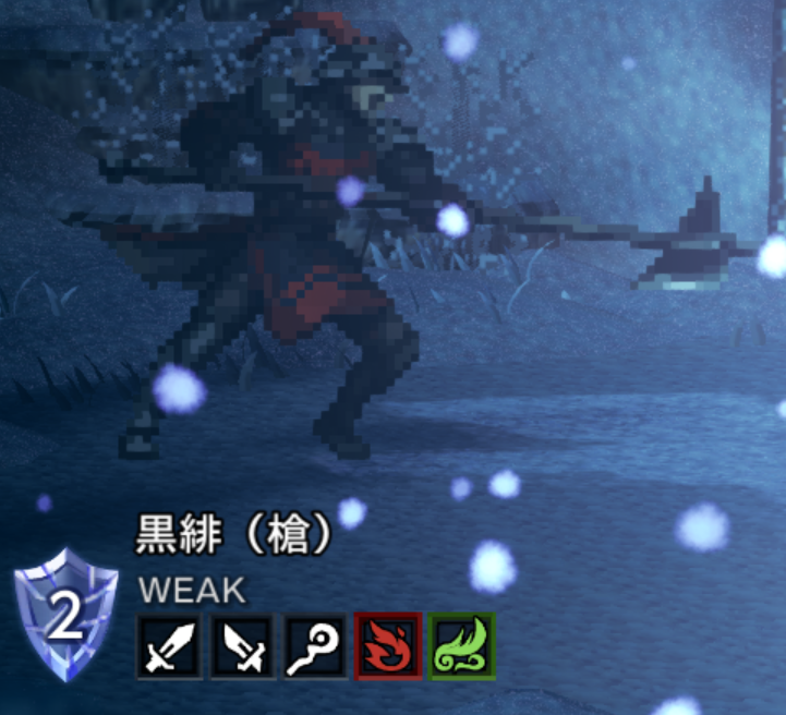 | 槍 / 短剣 / 弓 / 火 / 風 / 闇 | |