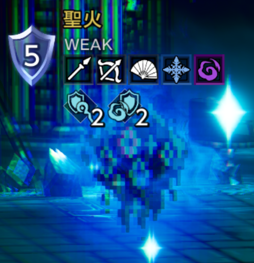 | オル・ガルデラ 剣 / 斧 / 本 / 氷 / 光 ↓ 槍 / 弓 / 扇 / 雷 / 光 ↓ 短剣 / 杖 / 火 / 風 / 光 虚空を分かつ腕 剣 / 槍 / 短剣 / 斧 / 弓 / 杖 / 本 / 扇 ※物理属性から3つ 左から1つずつずれる 血獄の魔槍 火 / 氷 / 雷 / 風 / 光 / 闇 ※魔法属性から3つ 左から1つずつずれる | |