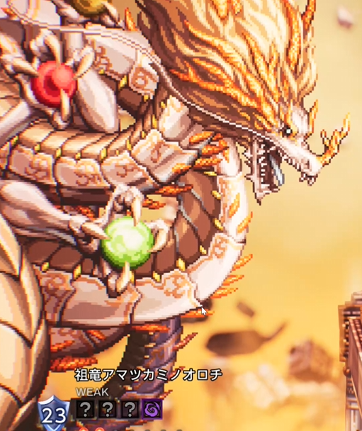 ![]() | 祖竜アマツカミノオロチ(HP120万) 竜紅弾(HP120000) 竜黄玉(HP110000) ※トゥルーエンド後 |