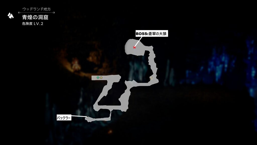 ウィッシュベール森道」から東に進むと「青煌の洞窟」に着く