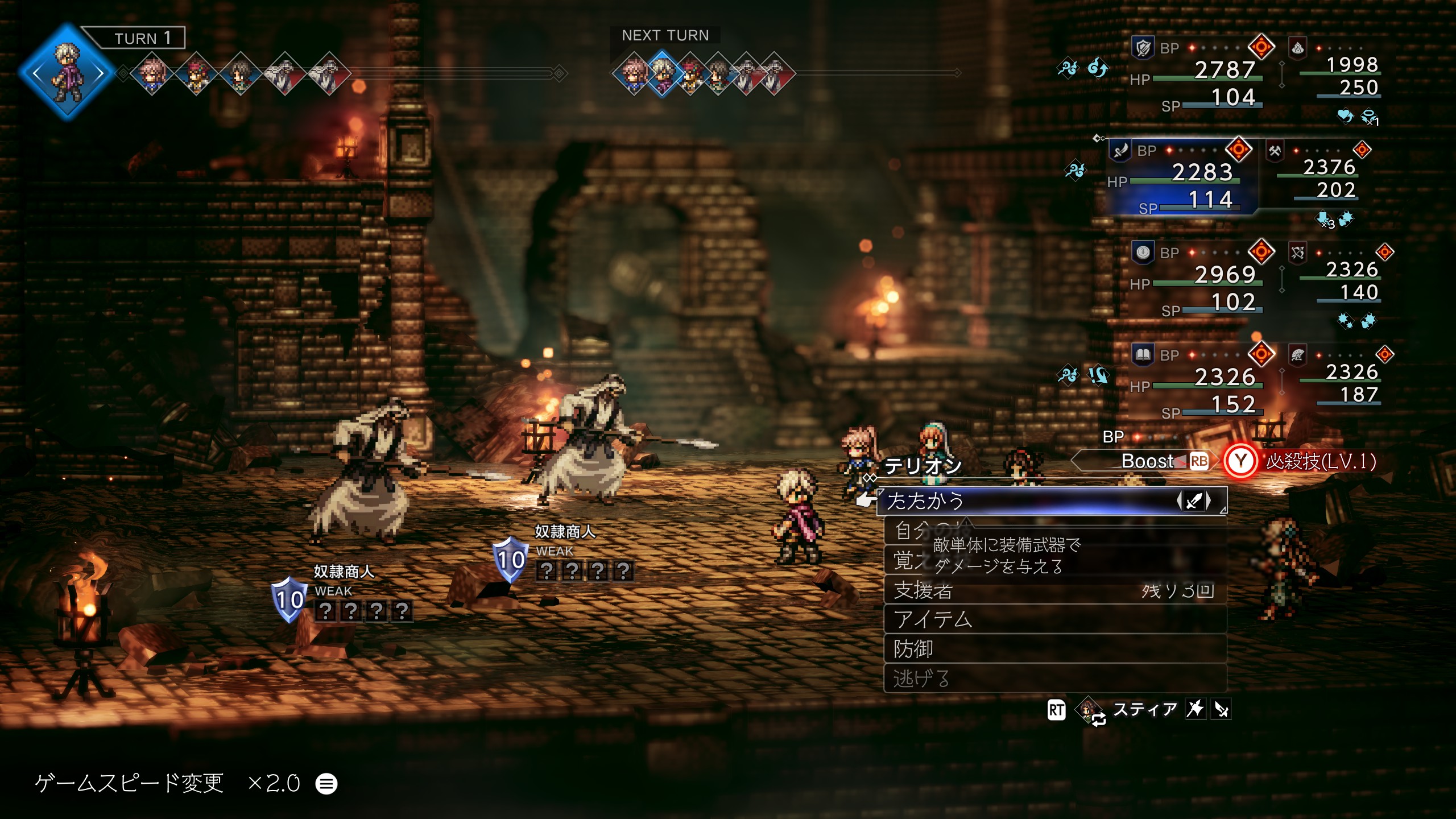 ![]() 砂雫の遺跡に向かい砂雫の遺跡北東にいる奴隷商人と戦闘 ![]() | |