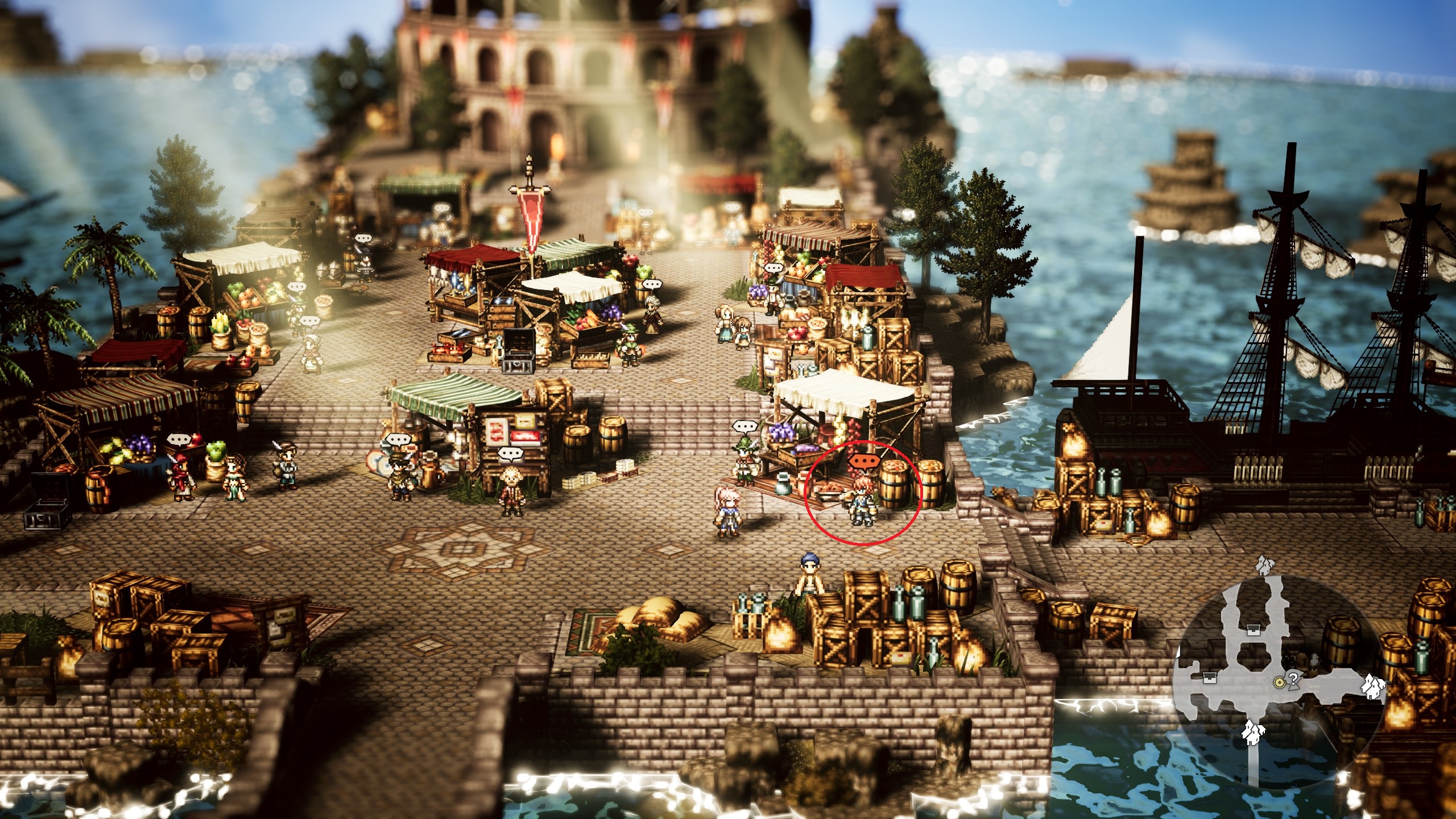 ![]() サンシェイドの入り口東に立っている男に話しかける | |