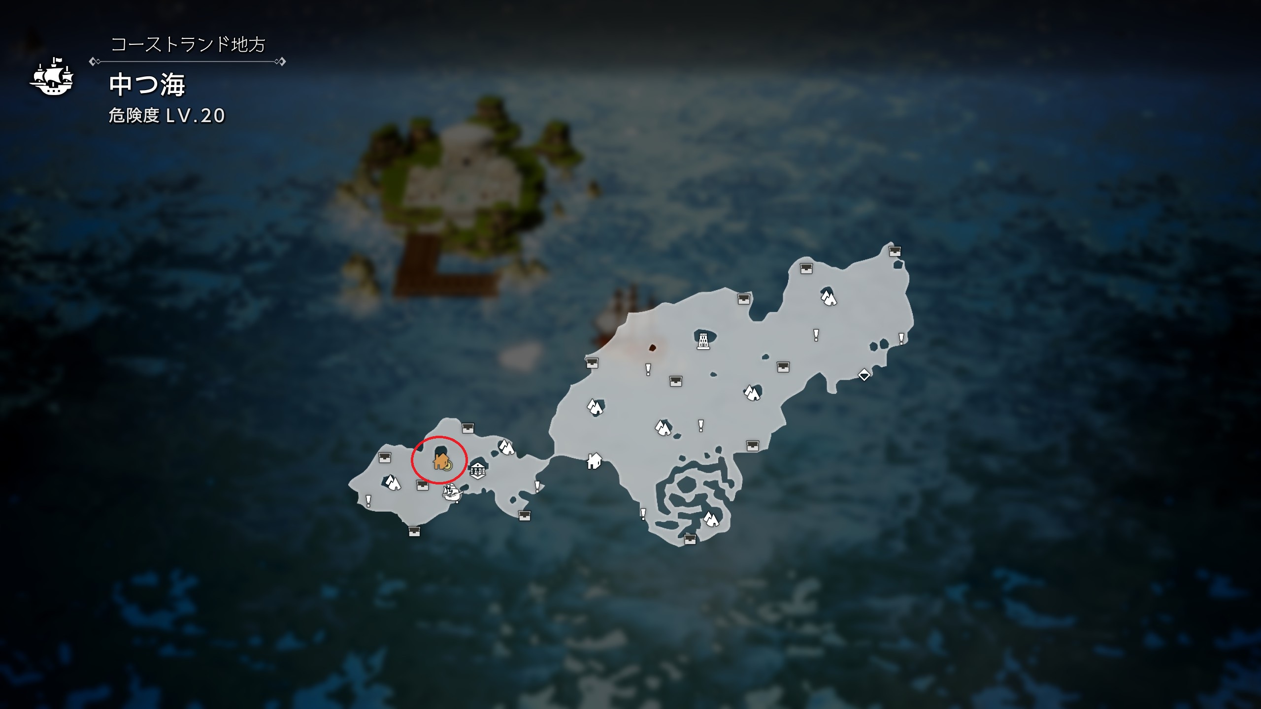 ![]() 中つ海に出現したアガペアに船で向かう |