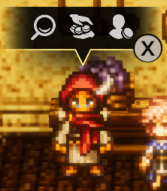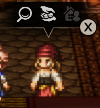 | サンシェイドの市場を巡回警備している兵士。 善良な買い物客をスリやボッタクリから守りたい ‥‥と町長に熱弁を振るい、ここに配備された。 実際は、珍品の集まる市場にいたかっただけである。 | |||
