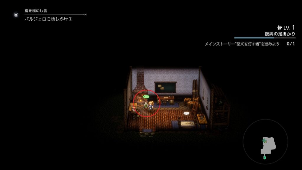 ウィッシュベールの工房にいるスティアと会話で「聖火を灯す者 第1章」開始