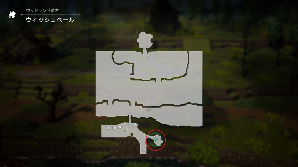 ノモスはウィッシュベール森道の北東の小屋内にいます