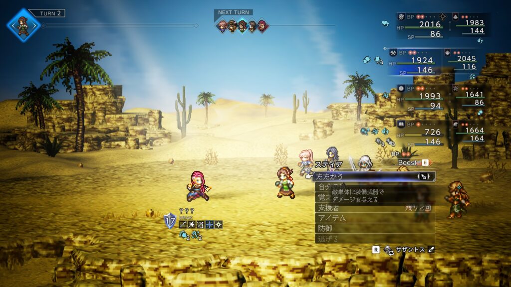 非常に強力な物理攻撃+出血を伴う技も使ってくるのでローラナが援護で回復してくれますが
