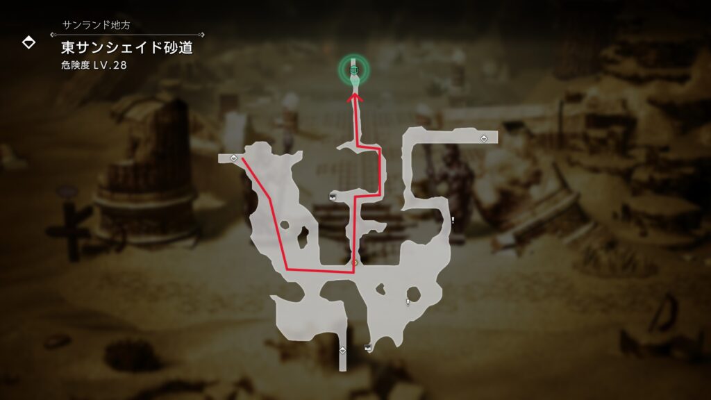 「東サンシェイド砂道」の北にある「砂雫の遺跡」に入ります