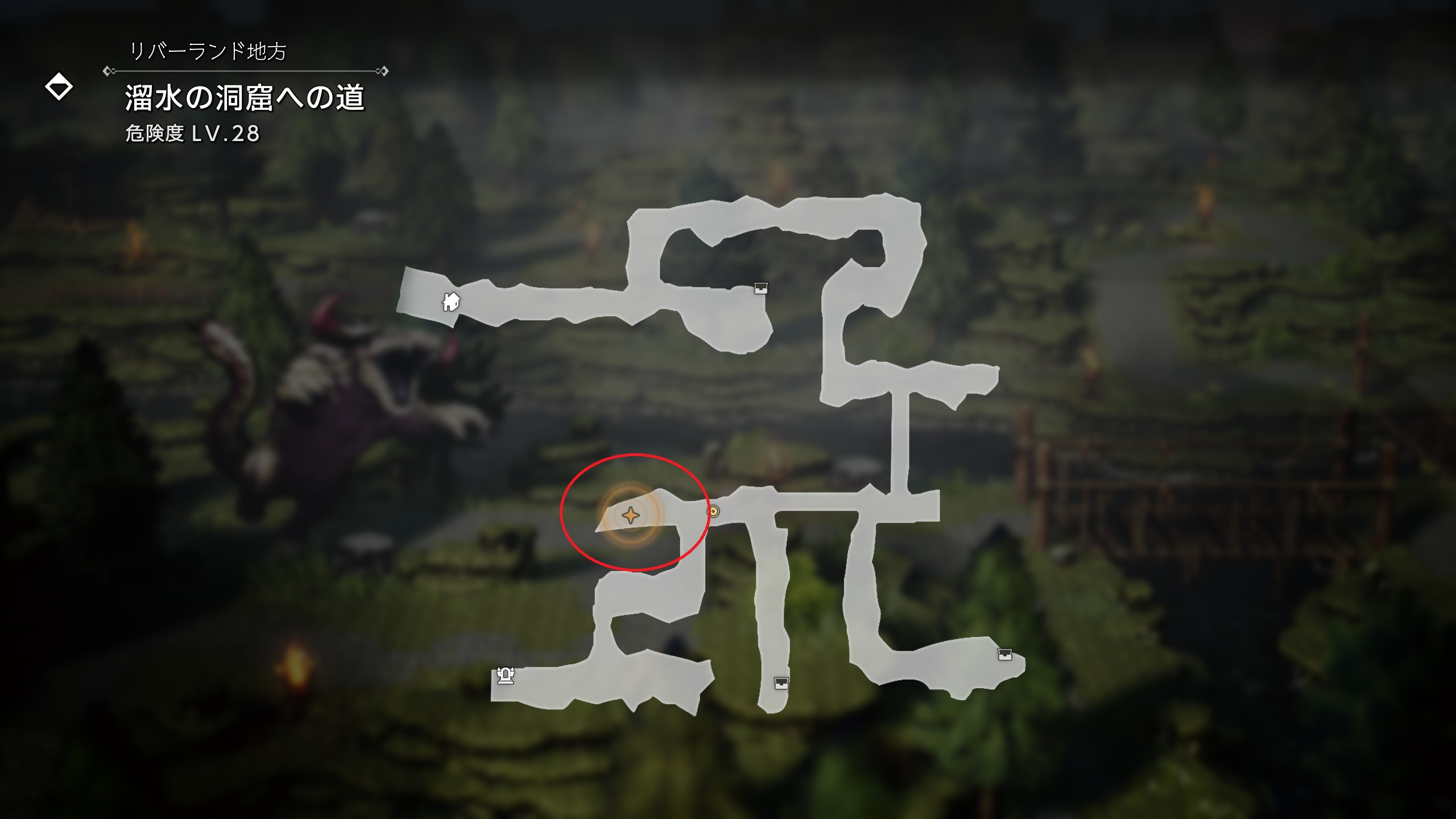 ![]() リバーランド地方にある溜水の洞窟への道で「ギガンティアス」を討伐する ![]() | |