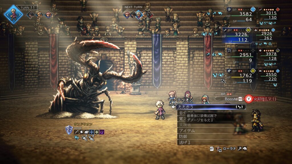 この敵は睡眠効果が比較的効く敵なのでアタッカーの武器を睡眠付与できる武器にしておけば
