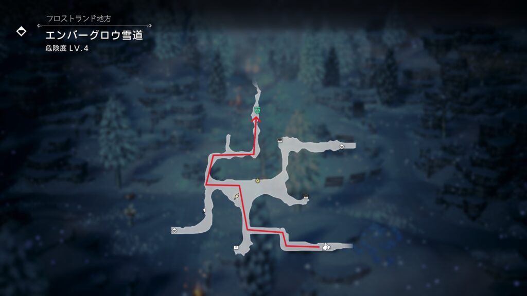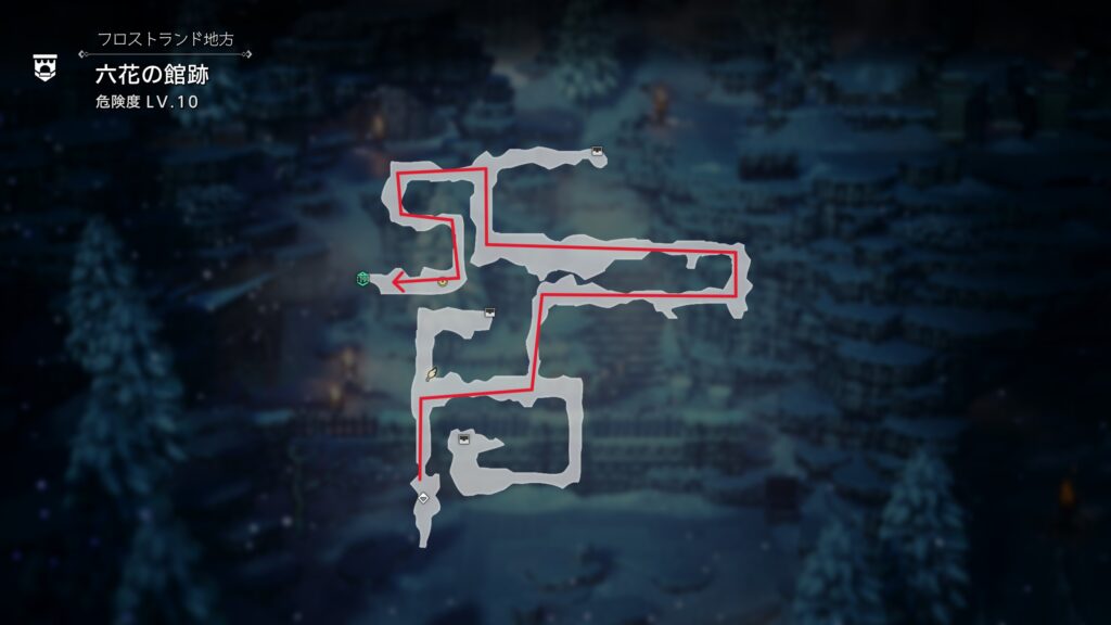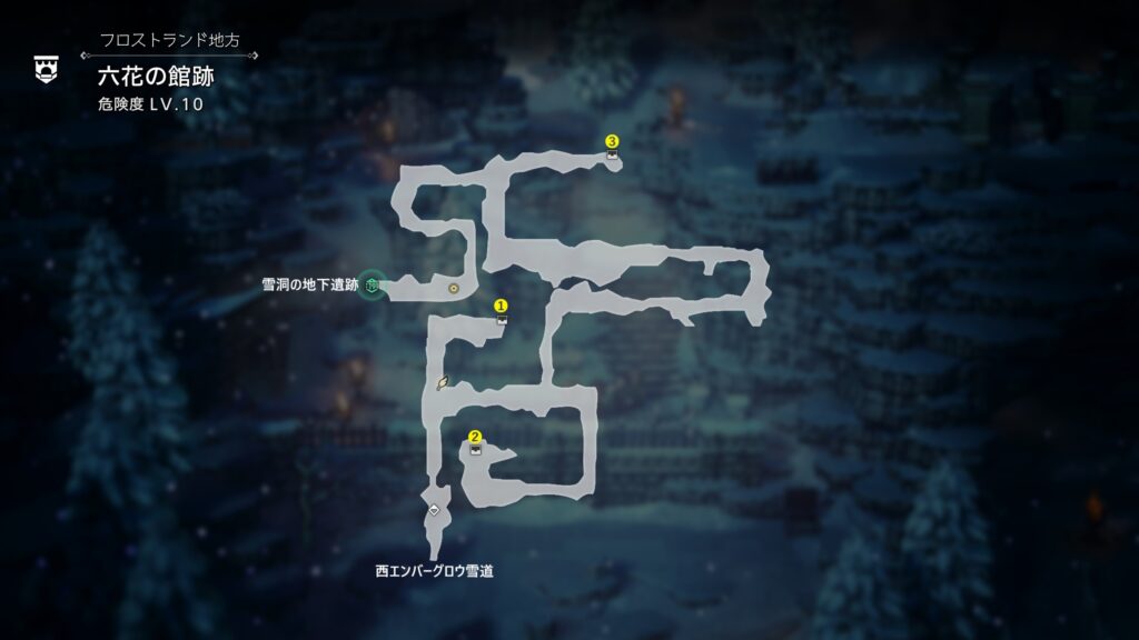 六花の館跡はエンバーグロウを出てエンバーグロウ雪道の北です