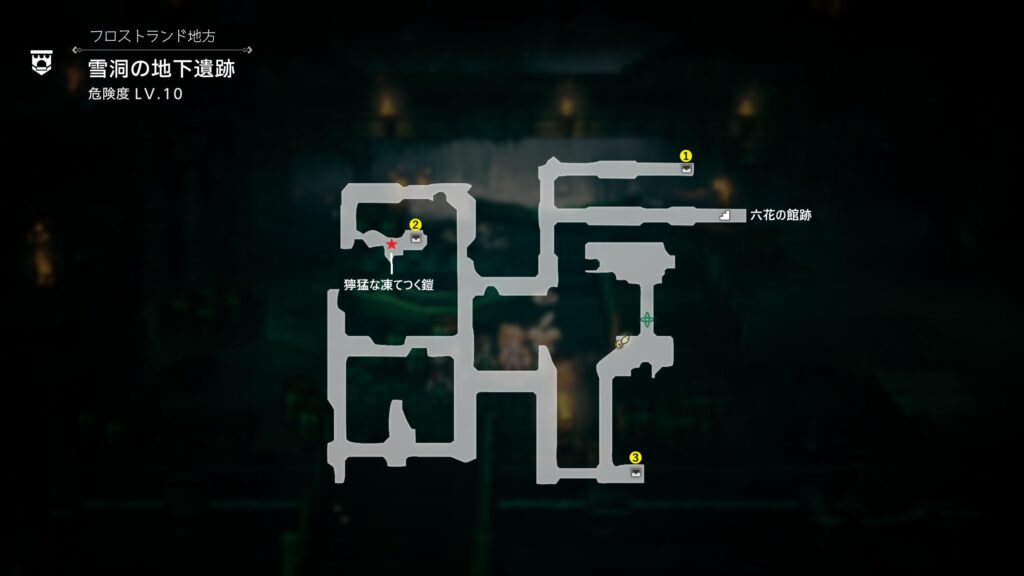 雪洞の地下遺跡では反時計回りに回って南東まで進むとボス「ソニア」戦