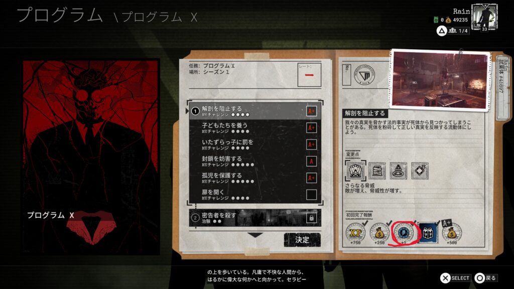 「死薬体解放試験」プログラムXの各治験をクリアするごとに手に入る「解放メダル」を