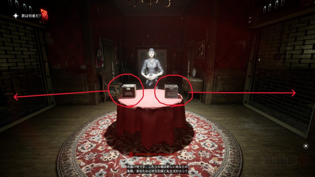 スタートしてすぐ目の前のテーブルに2つの箱が置いてあります。