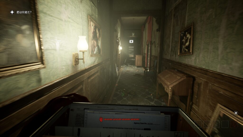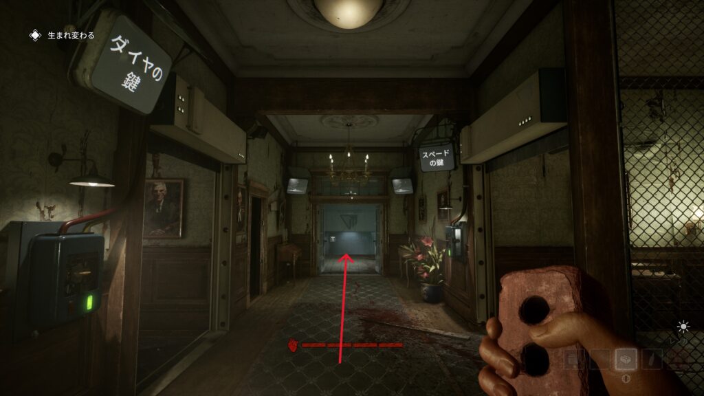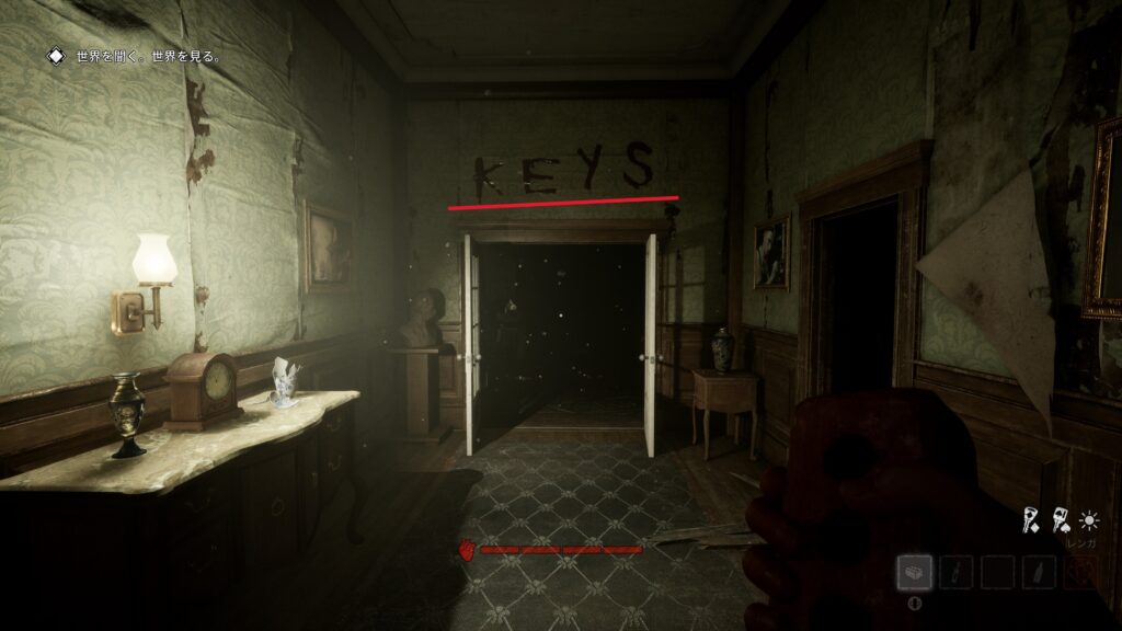 突き当りまで抜けるとチュートリアルでも登場した書斎エリアみたいな場所があります。