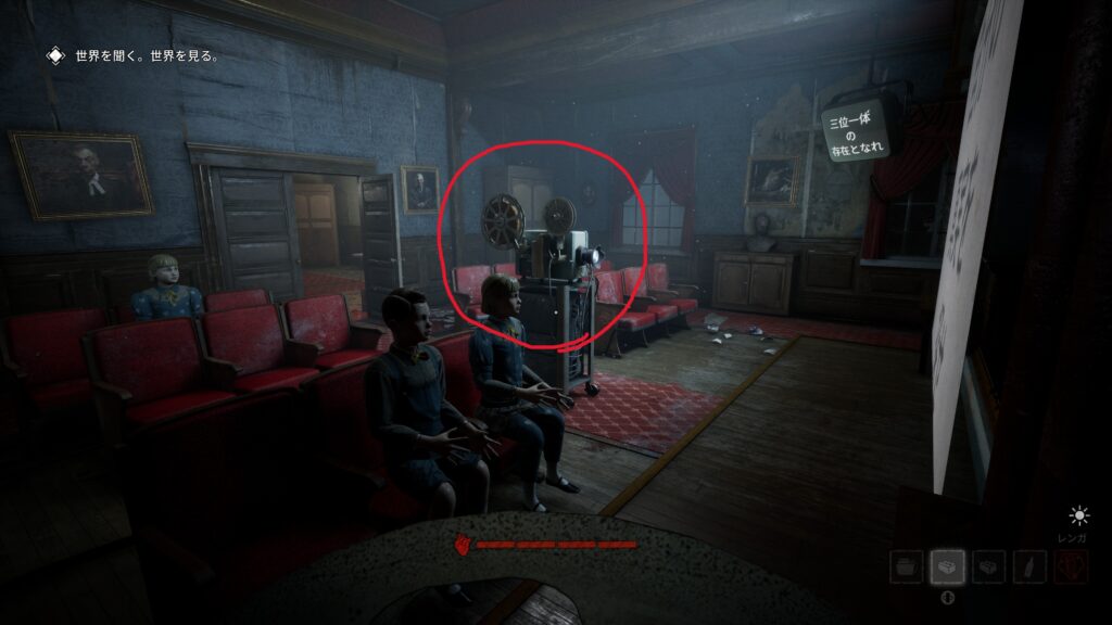 フィルムは1ヶ所交換すればクリアとなりますが、ラジオ受信機と同様、鍵を刺して入れる2つのエリアのどこかに落ちています。
