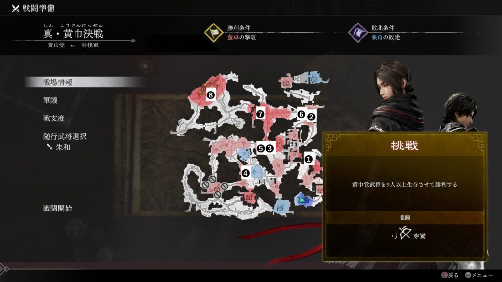 | 条件 | 黄巾党武将を9人以上生存させて勝利する |