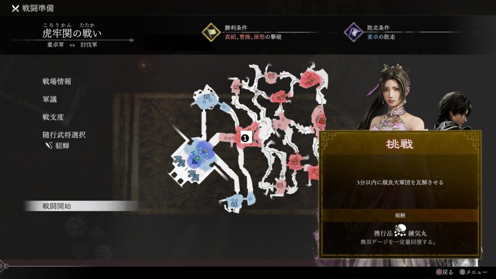 | 条件 | 3分以内に顔良大軍団を瓦解させる |