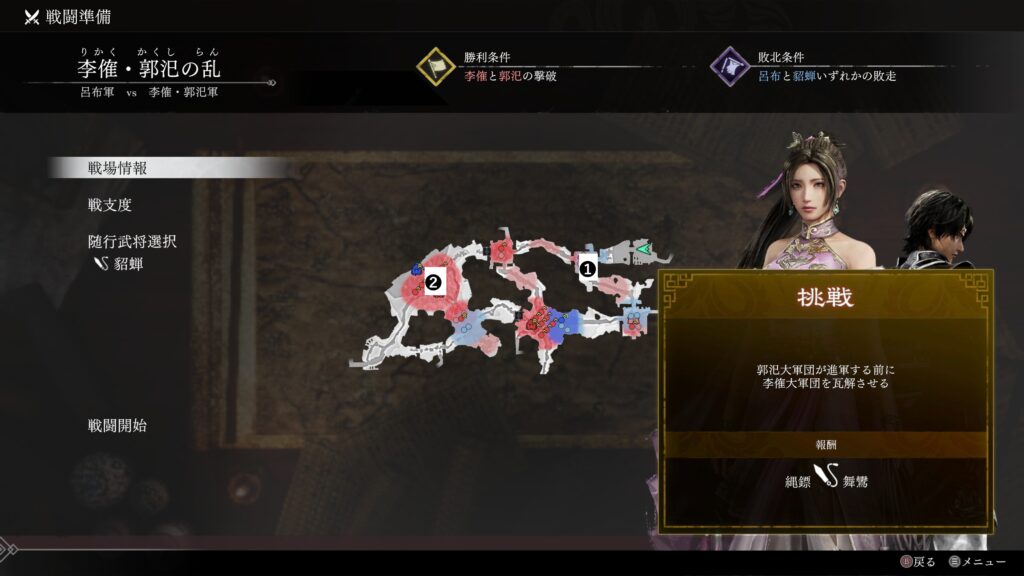 | 条件 | 郭汜大軍団が進軍する前に 李傕大軍団を瓦解させる |