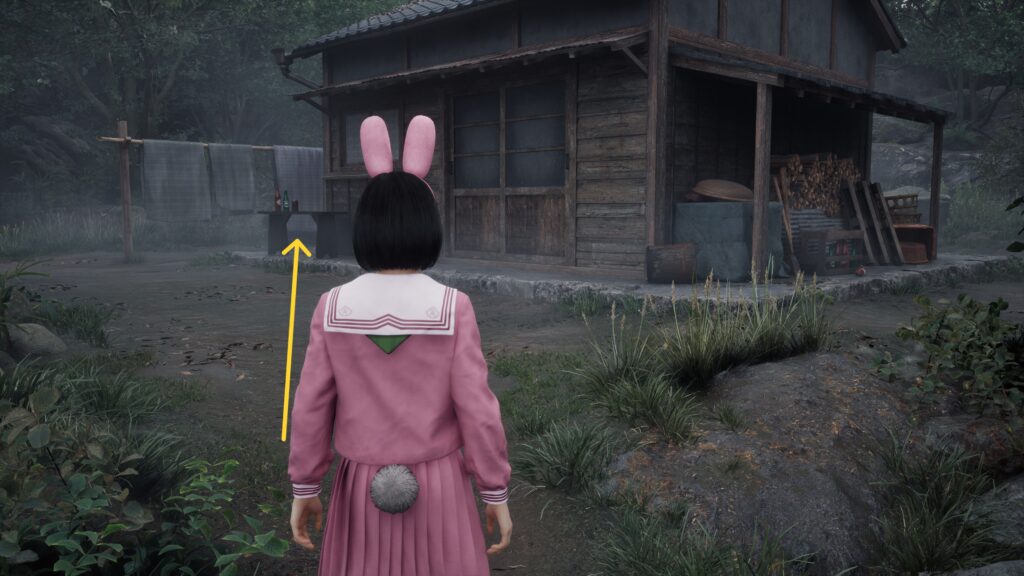 段差を上がって奥にある家屋に逃げ込もう