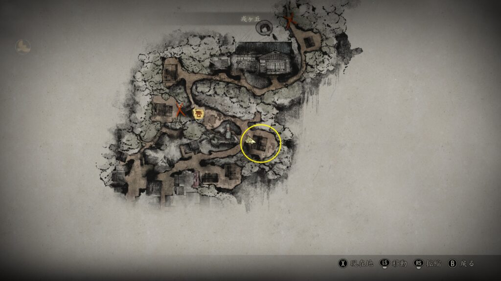 目的地は地図南の家屋の中