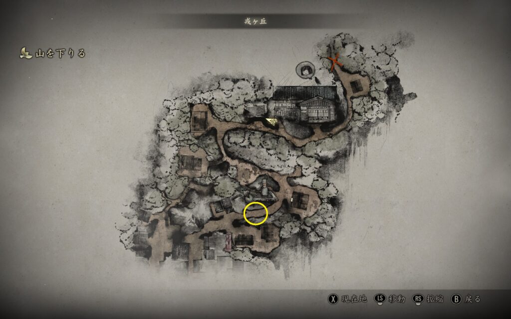 目的地は山の下、道中祠(セーブポイント)有