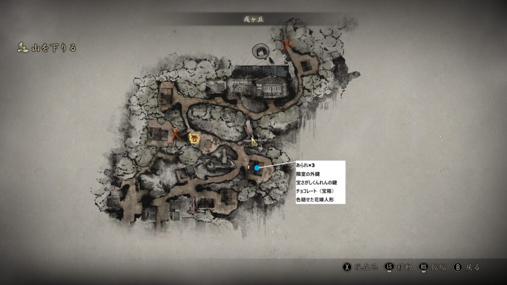 ❸5つの宝箱を開けて「色褪せた花嫁人形」を入手