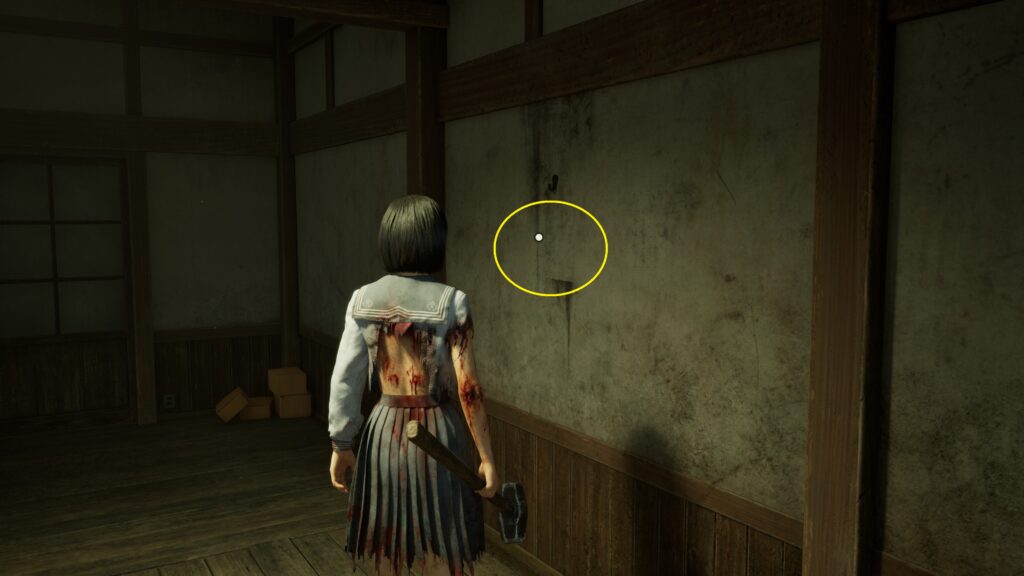 廊下を少し北へ進むと雛子の部屋の仕掛け戸が見える