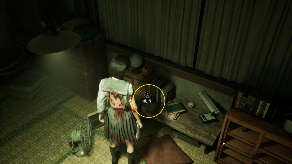 深水家(三)ではまず雛子の部屋に入り角にある本棚を調べる