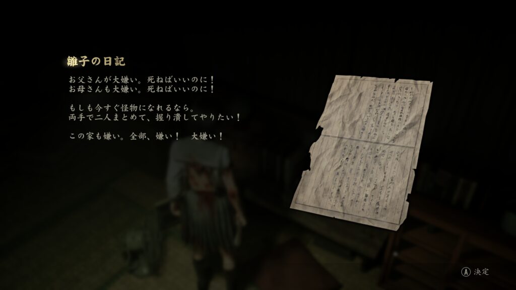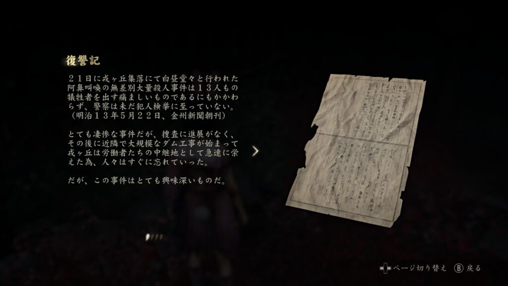 山でのバケモノ戦を終えた後に調べられる民家の陰