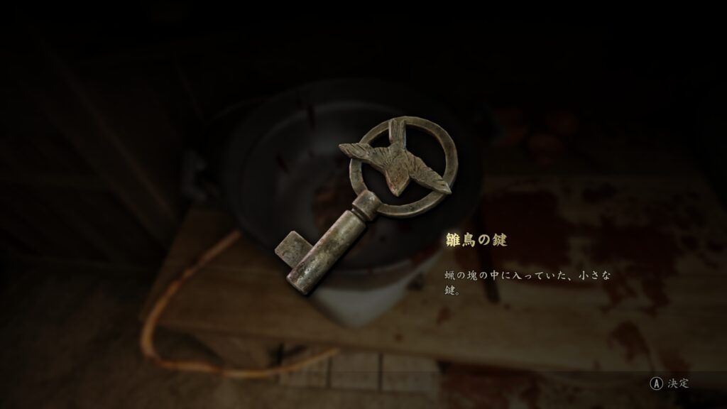 まず台所では「ガスチューブ」と「ロウの塊」を使うことで「雛鳥の鍵」を入手できます