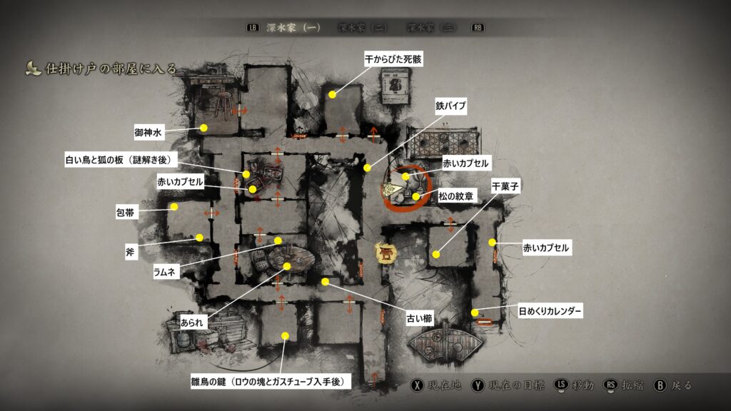 お稲荷様の紋章がある部屋と箱をすべて開けた