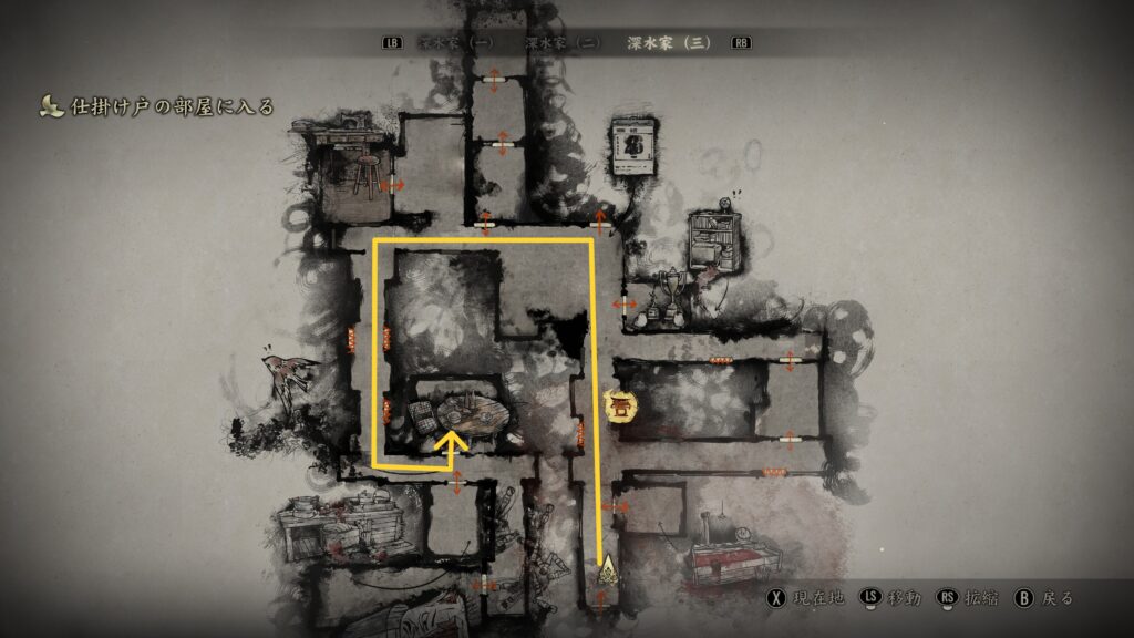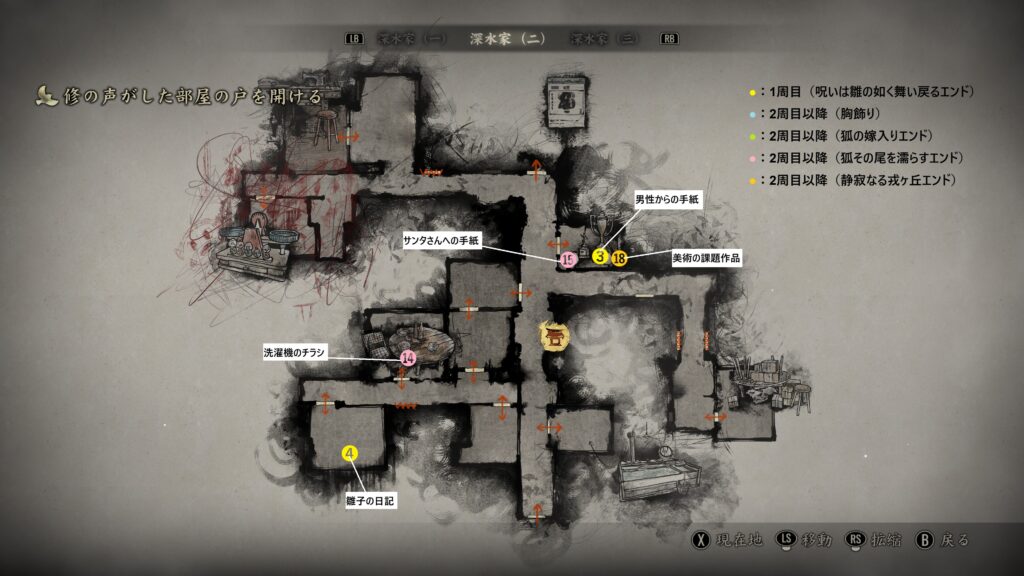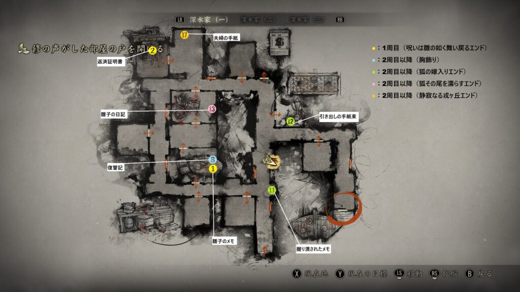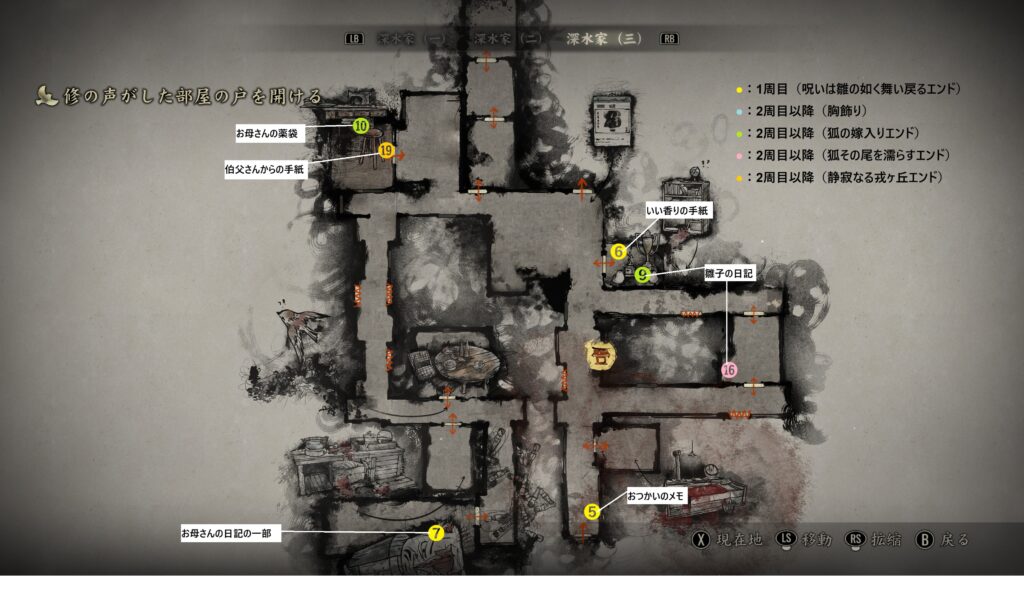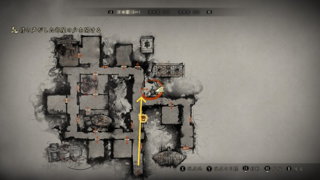 次に反時計回りに深水家を回り南西の部屋を目指す