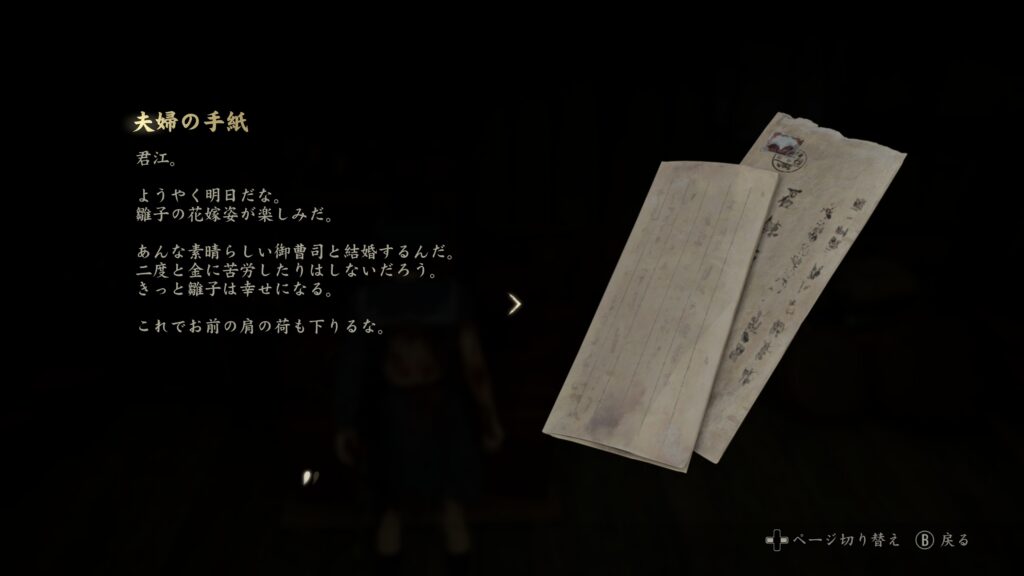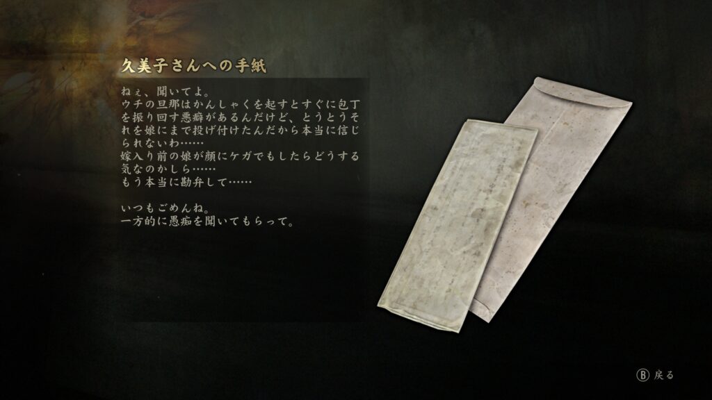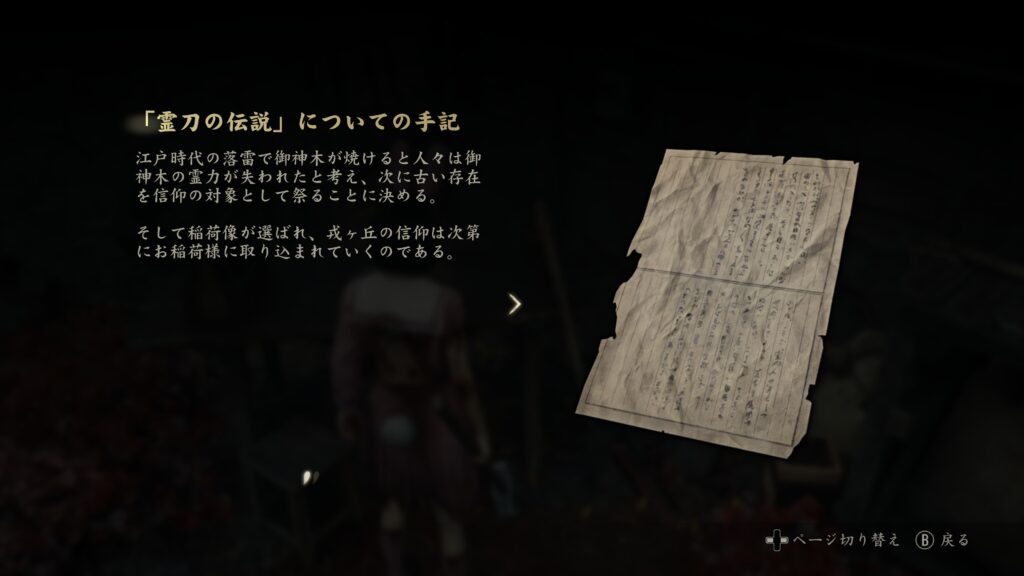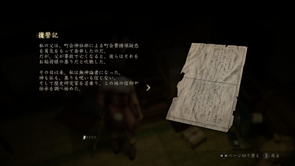 ただし「胸飾り」を奉納するとこの後の深水家での復讐記が入った箱や本殿にて狐の紋章が入った扉を開けることができません