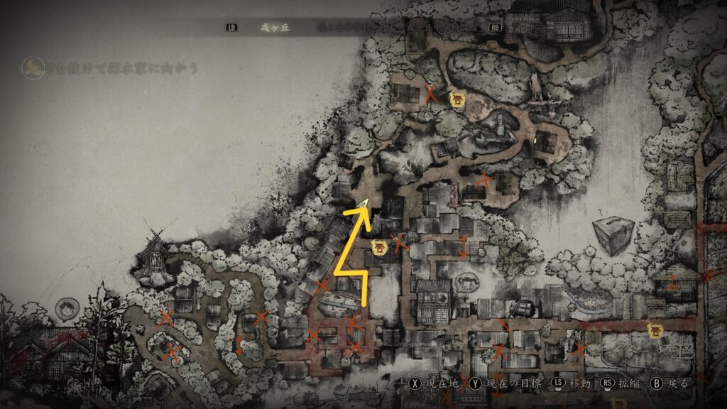 1周目 山を下る道中の卵を産む強敵手前の家屋