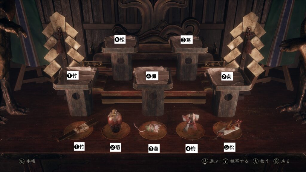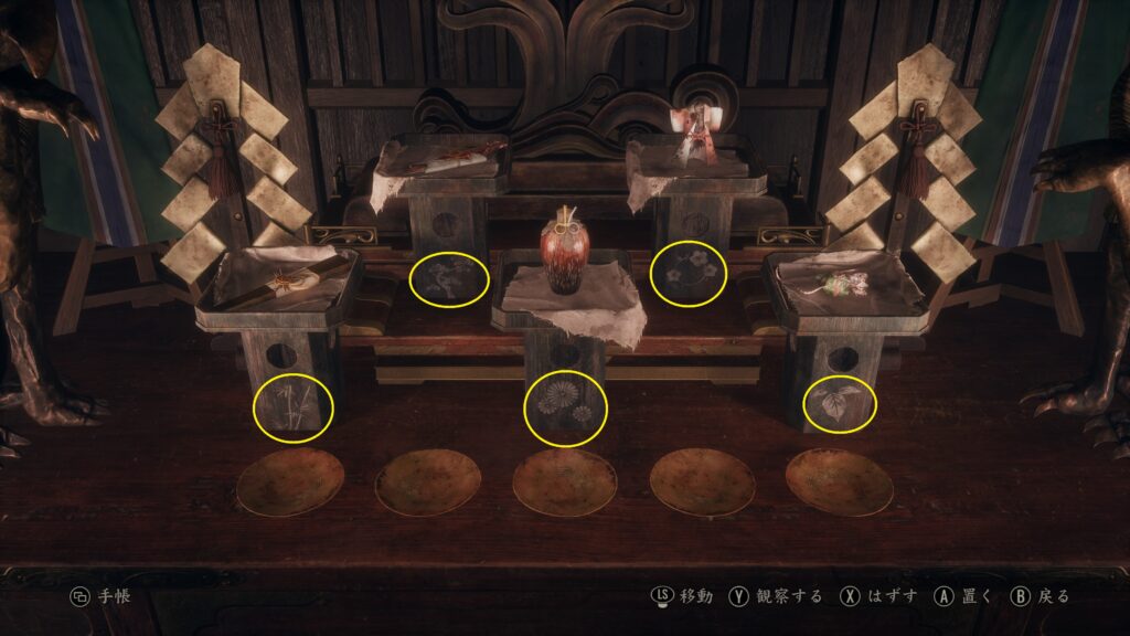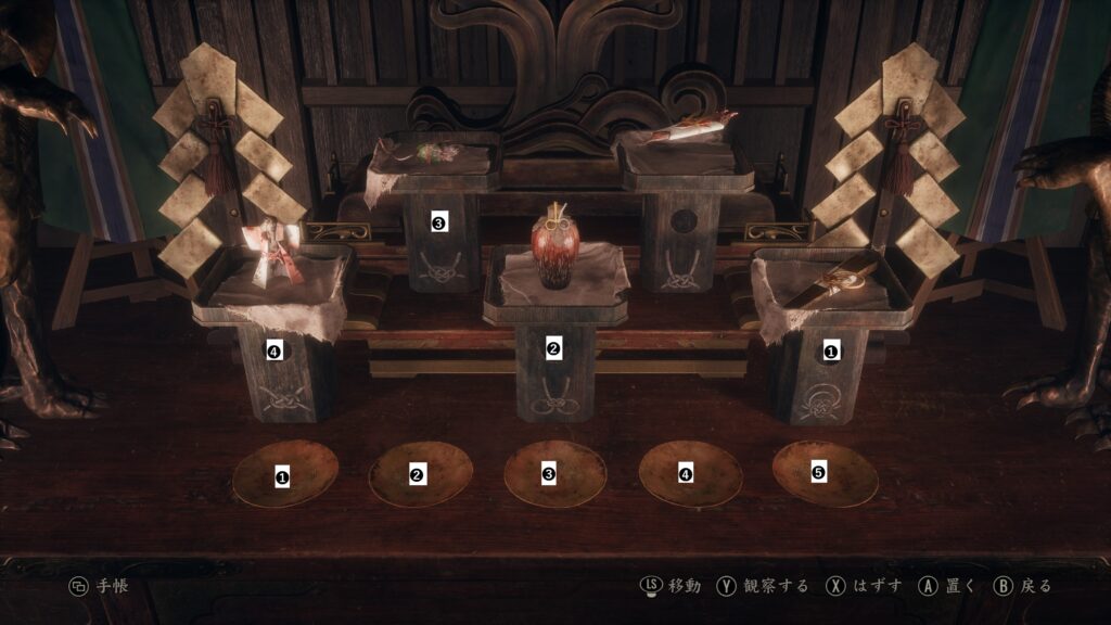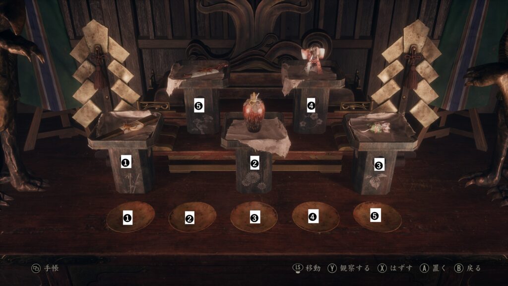 供物の結び目と台座の結び目が同じになるように並び替えよう