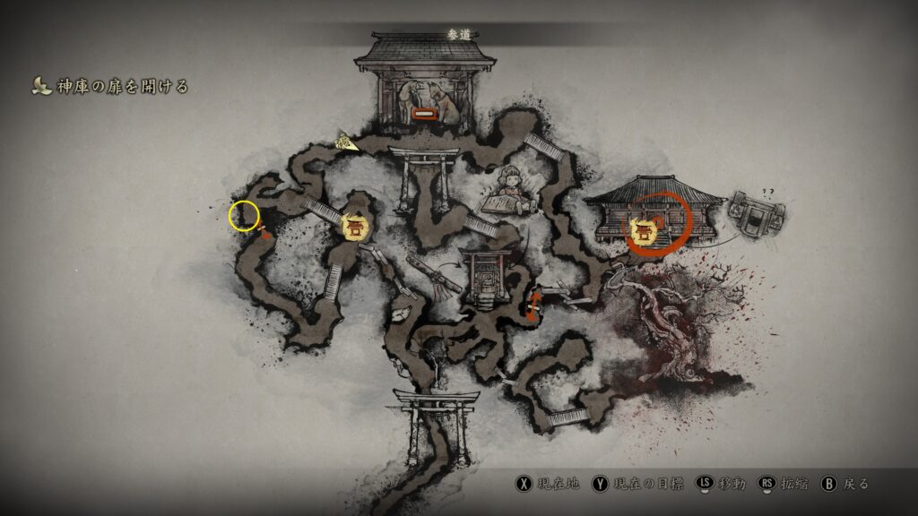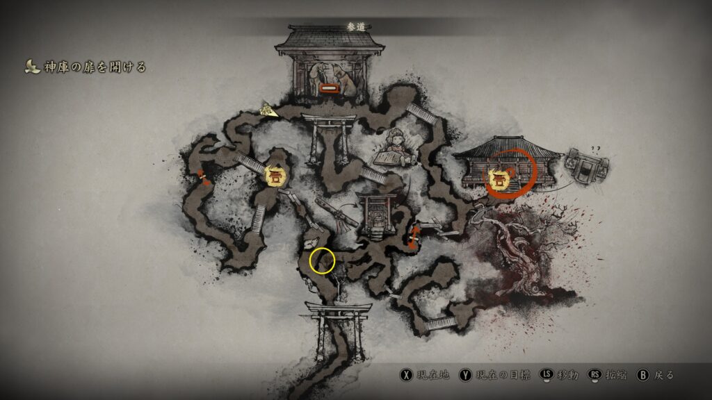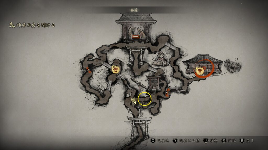参道にて、攻撃を一度も受けることなく神庫の扉を開けた