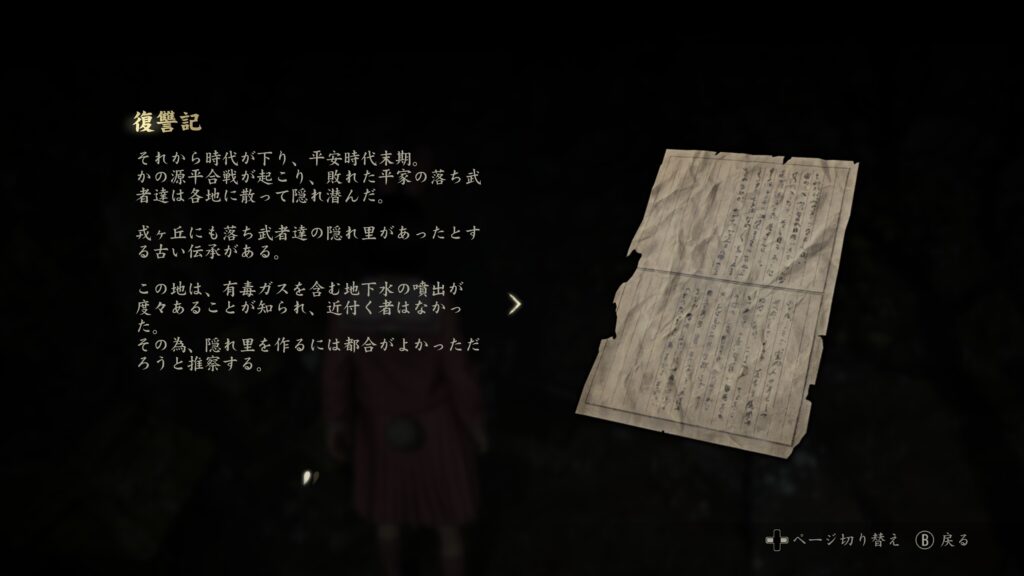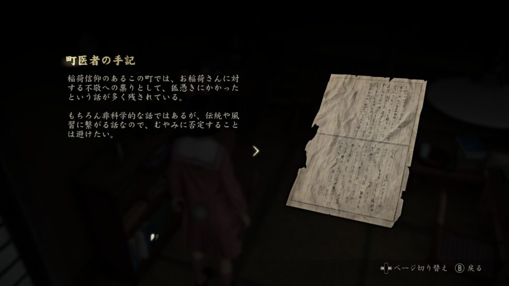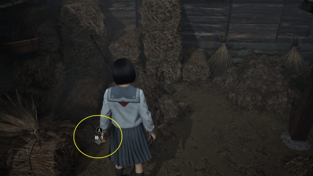 まずは田んぼ前にある祠の北西に落ちている「研究手記の写真その2」を拾う