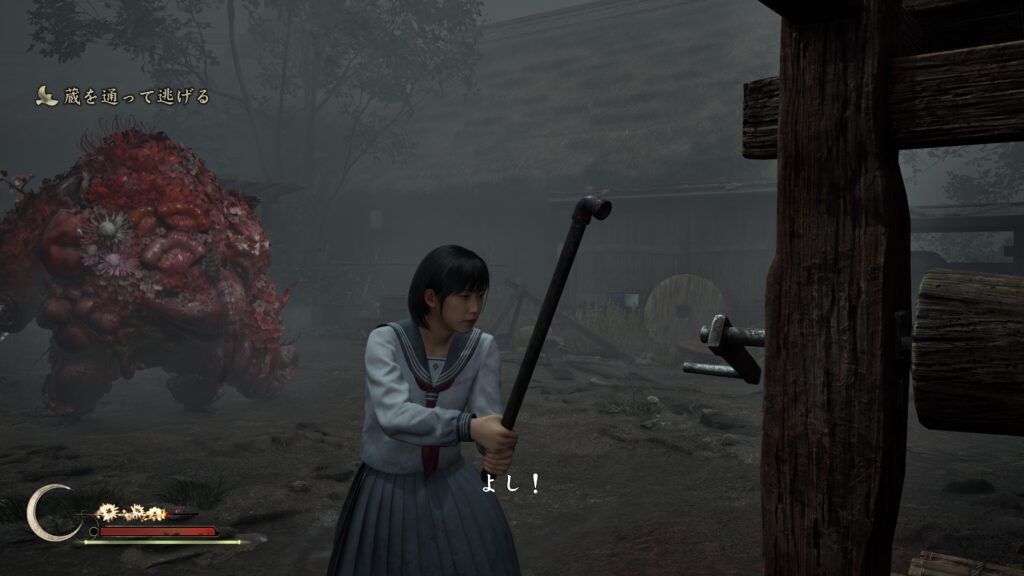 敵の隙を見て鍵があった井戸を回して鍵を入手する必要がある