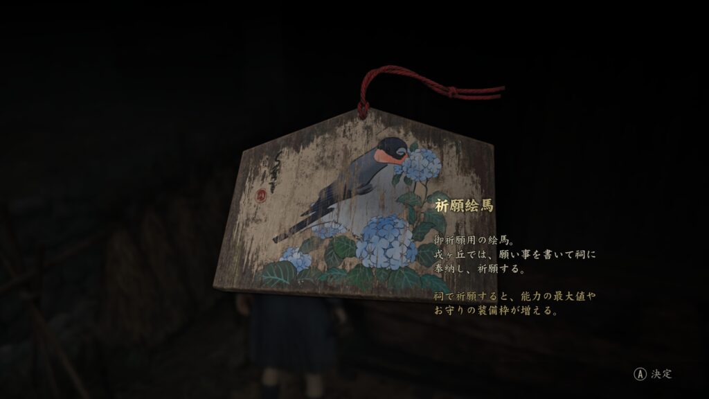飛ばされる前に必ず上左の黄色丸から「祈願絵馬」を入手しておこう。